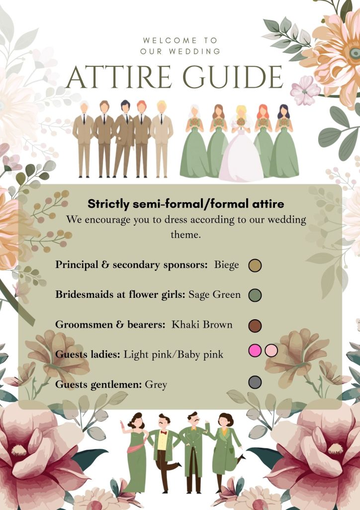 Refer to the attire guide or click here. Check it out! Note: Strictly no wearing of white dress, jeans, slippers.
